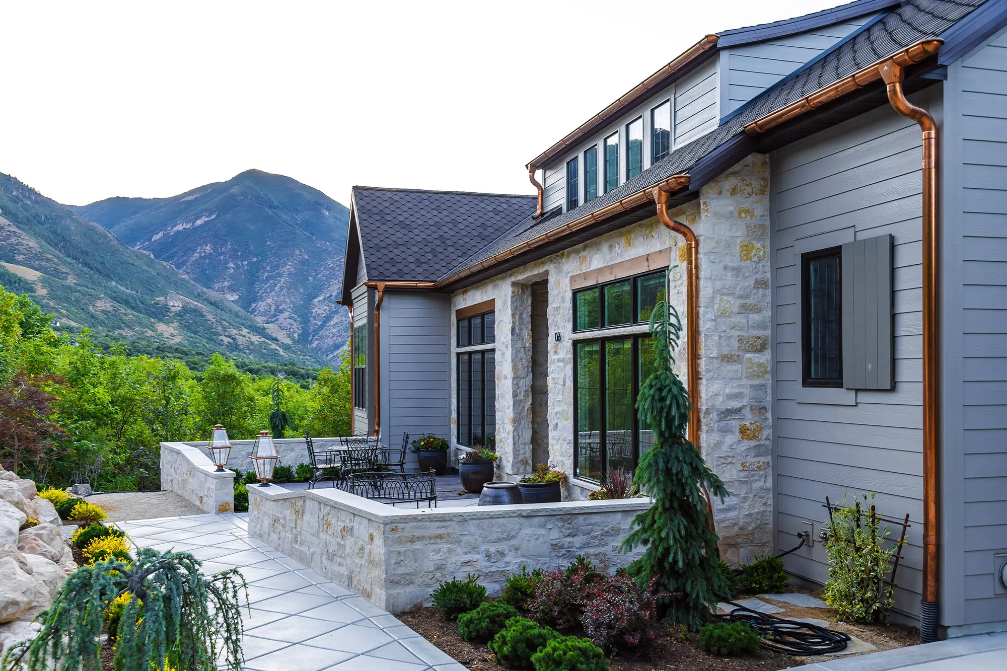 A showcase of timeless craftsmanship featuring custom half round European gutters and a handcrafted chimney cap on Valor Homes’ award-winning Parade of Homes project in Utah County.