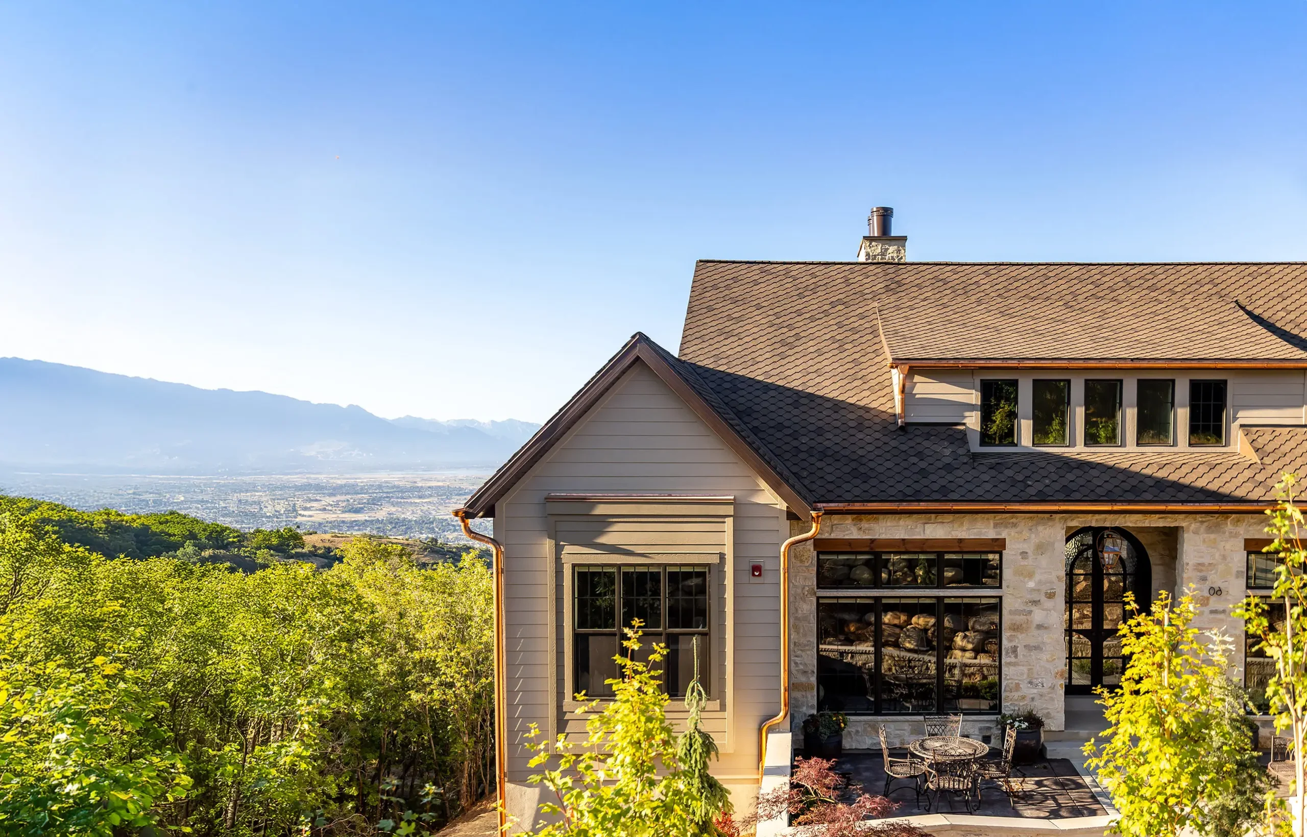 A refined display of timeless craftsmanship, highlighted by custom half-round European gutters and a handcrafted chimney cap on Valor Homes’ award-winning Parade of Homes home in Utah County.